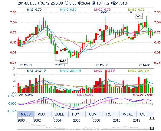 | 今 開: | 6.72 | 成交量: | 13.44萬手 | 振 幅: | 2.97% |