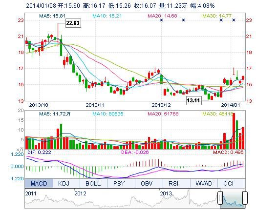 | 今 開: | 15.60 | 成交量: | 11.29萬手 | 振 幅: | 5.89% |