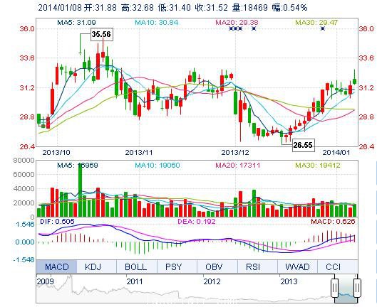 今開: 31.88 成交量: 1.85萬(wan) 手 振幅: 4.08% 最高: 32.68 成交額: 5899.29萬(wan) 元 換手率: 0.54% 最低: 31.40 總市值: 136.37億(yi) 市淨率: 8.41 昨收: 31.35 流通市...