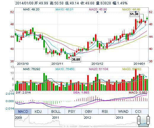 | 最 高: | 50.58 | 成交額: | 3.18億元 | 換手率: | 2.22% |