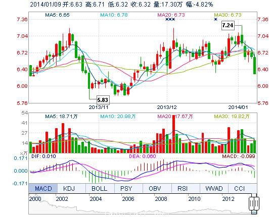 | 今 開: | 6.63 | 成交量: | 17.30萬手 | 振 幅: | 5.87% |