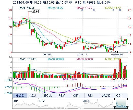 | 今 開: | 16.09 | 成交量: | 7.97萬手 | 振 幅: | 6.29% |