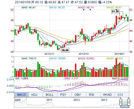 | 最 高: | 49.60 | 成交額: | 3.11億元 | 換手率: | 2.23% |