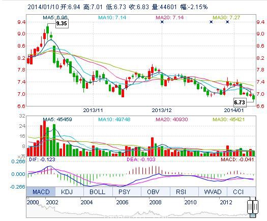 | 今 開: | 6.94 | 成交量: | 4.46萬手 | 振 幅: | 4.01% |