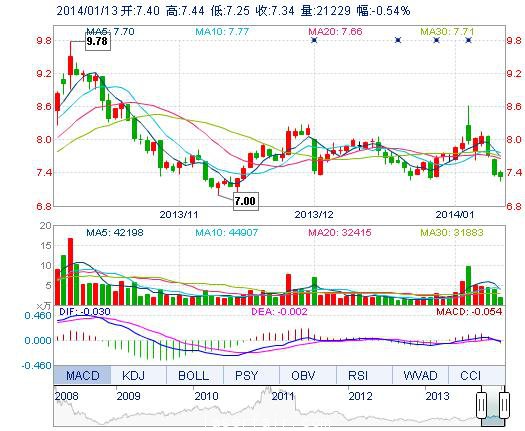 今開: 7.40 成交量: 2.12萬(wan) 手 振幅: 2.57% 最高: 7.44 成交額: 1561.54萬(wan) 元 換手率: 0.77% 最低: 7.25 總市值: 20.92億(yi) 市淨率: 3.35 昨收: 7.38 流通市值: ...