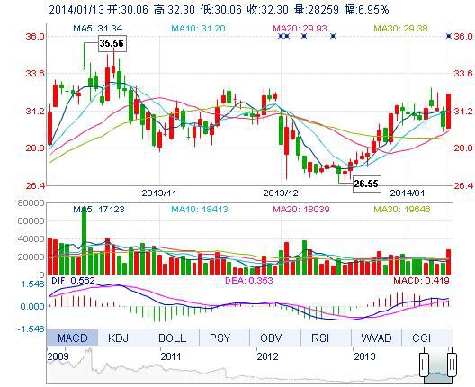 今開: 30.06 成交量: 2.83萬(wan) 手 振幅: 7.42% 最高: 32.30 成交額: 8999.70萬(wan) 元 換手率: 0.83% 最低: 30.06 總市值: 139.74億(yi) 市淨率: 8.62 昨收: 30.20 流通市...
