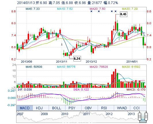 | 今 開: | 6.90 | 成交量: | 2.17萬手 | 振 幅: | 2.46% |