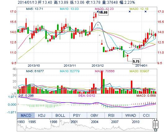 | 今 開: | 13.40 | 成交量: | 3.76萬手 | 振 幅: | 6.16% |