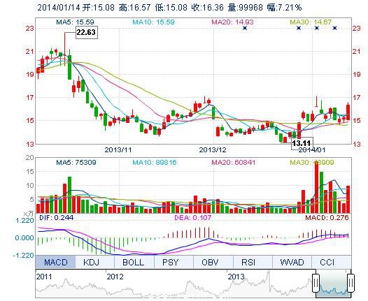 | 最 高: | 16.57 | 成交額: | 1.60億元 | 換手率: | 14.59% |