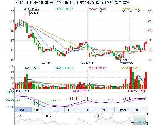 | 最 高: | 17.25 | 成交額: | 2.53億元 | 換手率: | 21.93% |