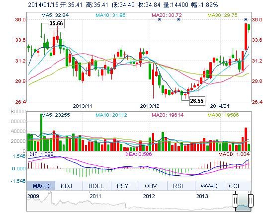 | 今 開: | 35.41 | 成交量: | 1.44萬手 | 振 幅: | 2.84% |