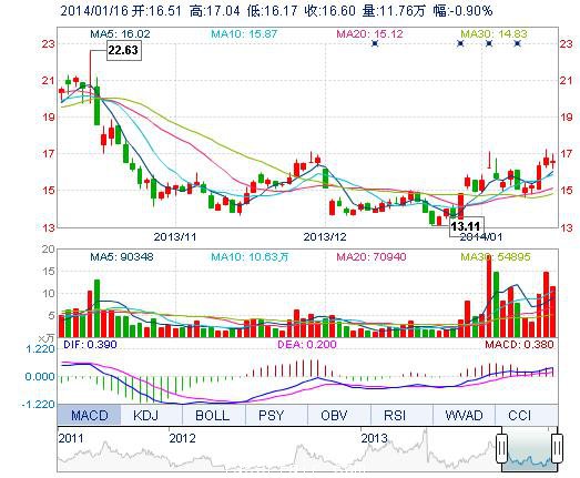 | 今 開: | 16.51 | 成交量: | 11.76萬手 | 振 幅: | 5.19% |