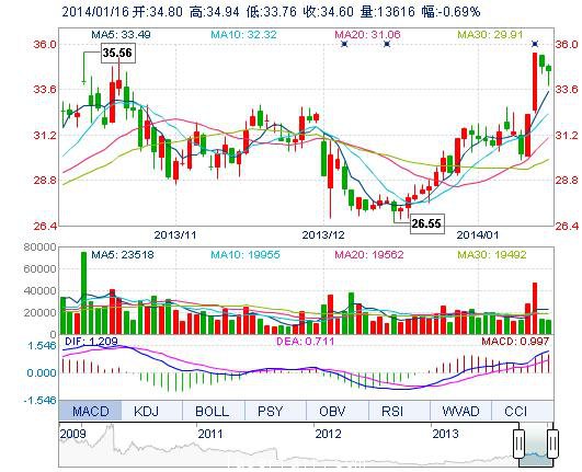 | 今 開: | 34.80 | 成交量: | 1.36萬手 | 振 幅: | 3.39% |