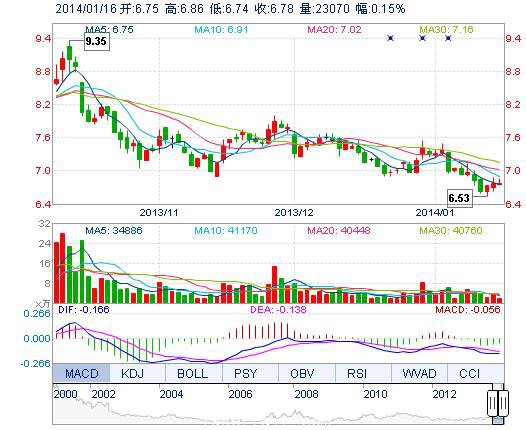 | 今 開: | 6.75 | 成交量: | 2.31萬手 | 振 幅: | 1.77% |