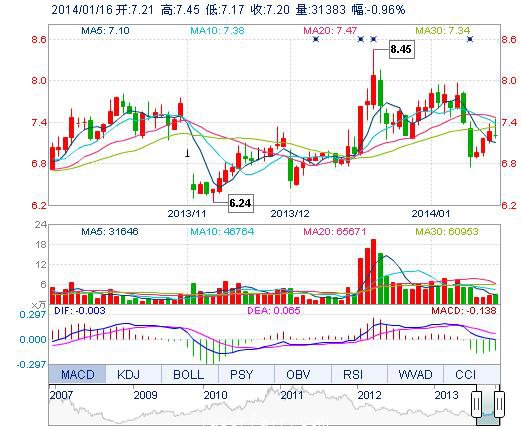 今開: 7.21 成交量: 3.14萬(wan) 手 振幅: 3.85% 最高: 7.45 成交額: 2289.74萬(wan) 元 換手率: 1.58% 最低: 7.17 總市值: 14.35億(yi) 市淨率: 2.92 昨收: 7.27 流通市值: ...