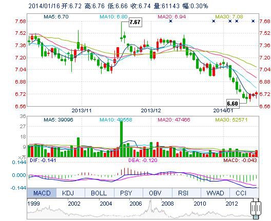 | 今 開: | 6.72 | 成交量: | 6.11萬手 | 振 幅: | 1.49% |