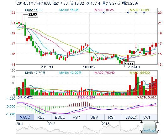 | 最 高: | 17.20 | 成交額: | 2.24億元 | 換手率: | 19.37% |
