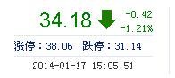 | 今 開: | 34.39 | 成交量: | 1.33萬手 | 振 幅: | 3.73% |