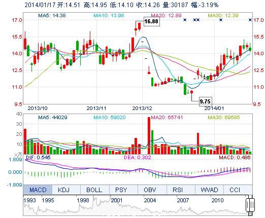 | 今 開: | 14.51 | 成交量: | 3.02萬手 | 振 幅: | 5.77% |