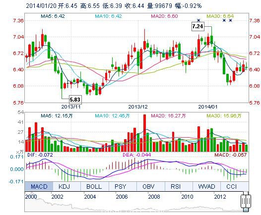 | 今 開: | 6.45 | 成交量: | 9.97萬手 | 振 幅: | 2.46% |