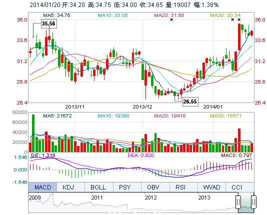 今開: 34.20 成交量: 1.90萬(wan) 手 振幅: 2.19% 最高: 34.75 成交額: 6529.30萬(wan) 元 換手率: 0.55% 最低: 34.00 總市值: 149.91億(yi) 市淨率: 9.24 昨收: 34.18 流通市...