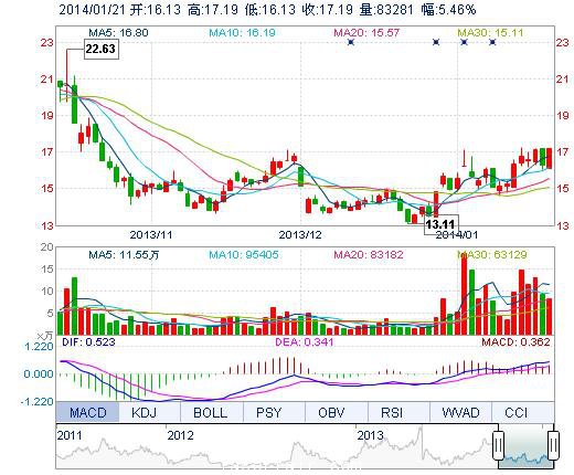 今開: 16.13 成交量: 8.33萬(wan) 手 振幅: 6.50% 最高: 17.19 成交額: 1.39億(yi) 元 換手率: 12.16% 最低: 16.13 總市值: 23.03億(yi) 市淨率: 7.09 昨收: 16.30 流通市值...