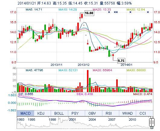 | 今 開: | 14.63 | 成交量: | 5.58萬手 | 振 幅: | 6.09% |