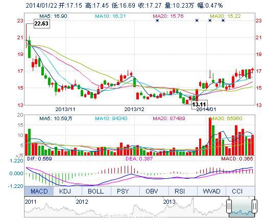 | 今 開: | 17.15 | 成交量: | 10.23萬手 | 振 幅: | 4.42% |