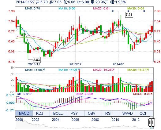 | 最 高: | 7.05 | 成交額: | 1.65億元 | 換手率: | 2.69% |