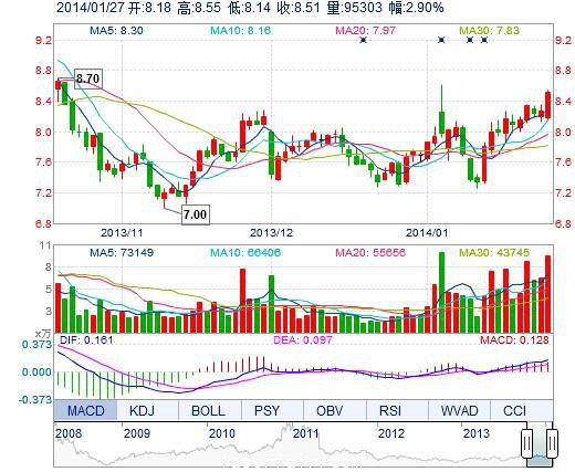 今開: 8.18 成交量: 9.53萬(wan) 手 振幅: 4.96% 最高: 8.55 成交額: 7989.87萬(wan) 元 換手率: 3.47% 最低: 8.14 總市值: 24.25億(yi) 市淨率: 3.89 昨收: 8.27 流通市值: ...