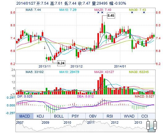 | 今 開: | 7.54 | 成交量: | 2.95萬手 | 振 幅: | 2.25% |