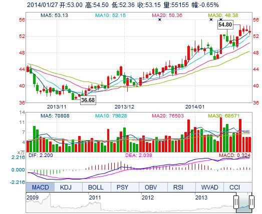| 最 高: | 54.50 | 成交額: | 2.95億元 | 換手率: | 1.92% |