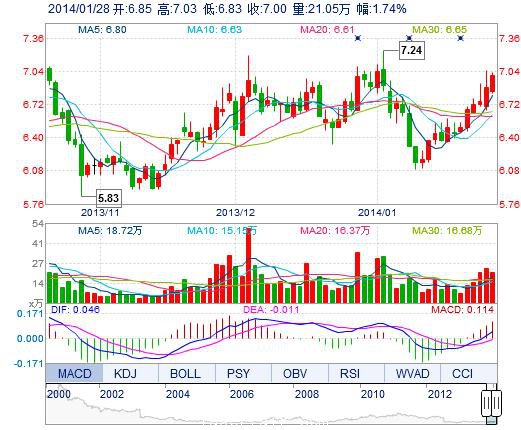 | 今 開: | 6.85 | 成交量: | 21.05萬手 | 振 幅: | 2.91% |