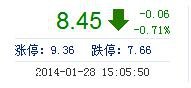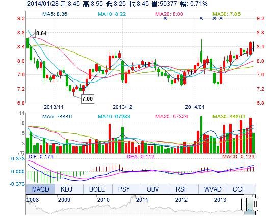 | 今 開: | 8.45 | 成交量: | 5.54萬手 | 振 幅: | 3.53% |
