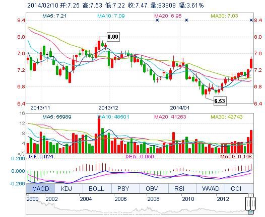 | 今 開: | 7.25 | 成交量: | 9.38萬手 | 振 幅: | 4.30% |