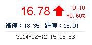| 最 高: | 16.78 | 成交額: | 3.38億元 | 換手率: | 2.15% |