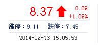 今開: 8.27 成交量: 64.10萬(wan) 手 振幅: 9.42% 最高: 9.05 成交額: 5.56億(yi) 元 換手率: 7.19% 最低: 8.27 總市值: 74.59億(yi) 市淨率: 2.76 昨收: 8.28 流通市值: 74...