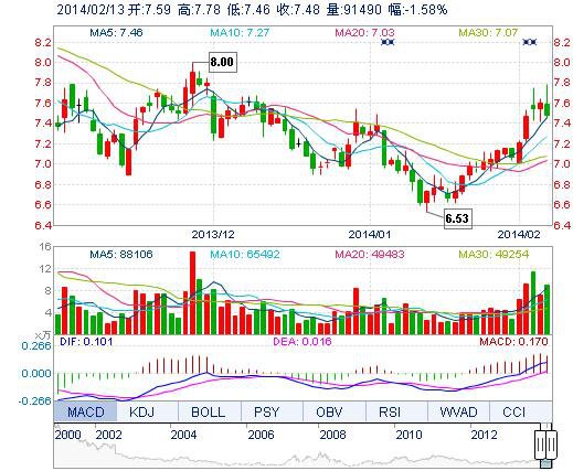 | 今 開: | 7.59 | 成交量: | 9.15萬手 | 振 幅: | 4.21% |