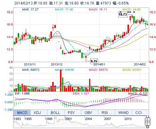 | 今 開: | 16.85 | 成交量: | 4.80萬手 | 振 幅: | 4.21% |