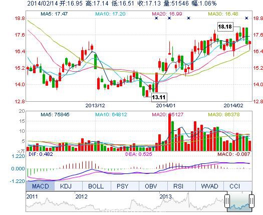 | 最 高: | 17.14 | 成交額: | 8708.28萬元 | 換手率: | 7.52% |