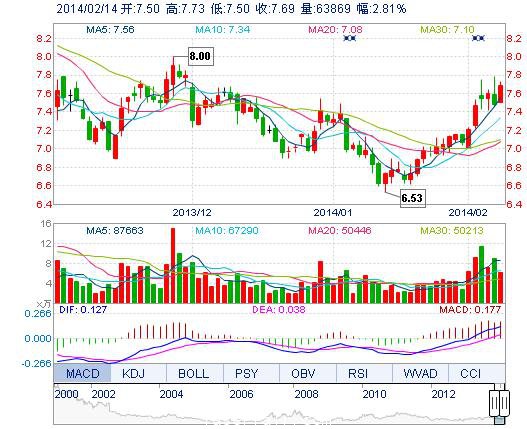 | 今 開: | 7.50 | 成交量: | 6.39萬手 | 振 幅: | 3.07% |