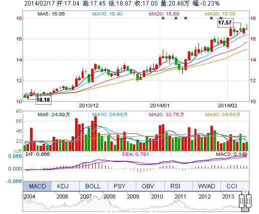 今開: 17.04 成交量: 20.48萬(wan) 手 振幅: 3.40% 最高: 17.45 成交額: 3.51億(yi) 元 換手率: 2.15% 最低: 16.87 總市值: 178.88億(yi) 市淨率: 5.08 昨收: 17.04 流通市值...