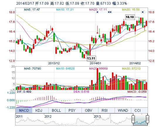 | 最 高: | 17.82 | 成交額: | 1.18億元 | 換手率: | 9.80% |