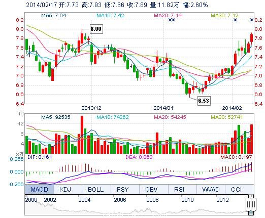 | 今 開: | 7.73 | 成交量: | 11.82萬手 | 振 幅: | 3.51% |