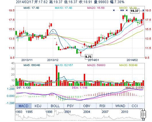 | 最 高: | 19.37 | 成交額: | 1.81億元 | 換手率: | 5.75% |