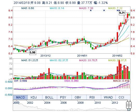| 最 高: | 9.21 | 成交額: | 3.41億元 | 換手率: | 4.24% |