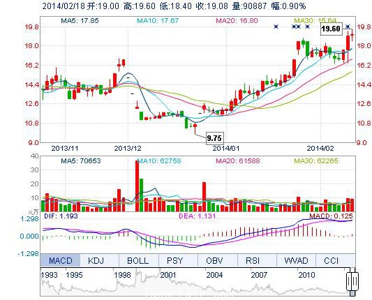 | 最 高: | 19.60 | 成交額: | 1.73億元 | 換手率: | 5.23% |