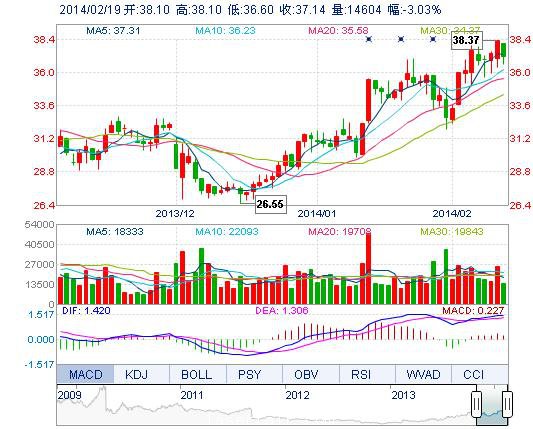 | 今 開: | 38.10 | 成交量: | 1.46萬手 | 振 幅: | 3.92% |