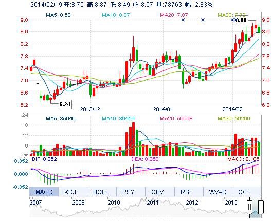 | 今 開: | 8.75 | 成交量: | 7.88萬手 | 振 幅: | 4.31% |