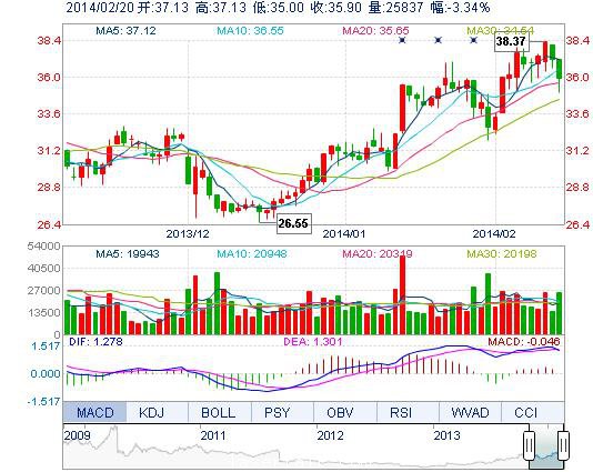 | 今 開: | 37.13 | 成交量: | 2.58萬手 | 振 幅: | 5.74% |